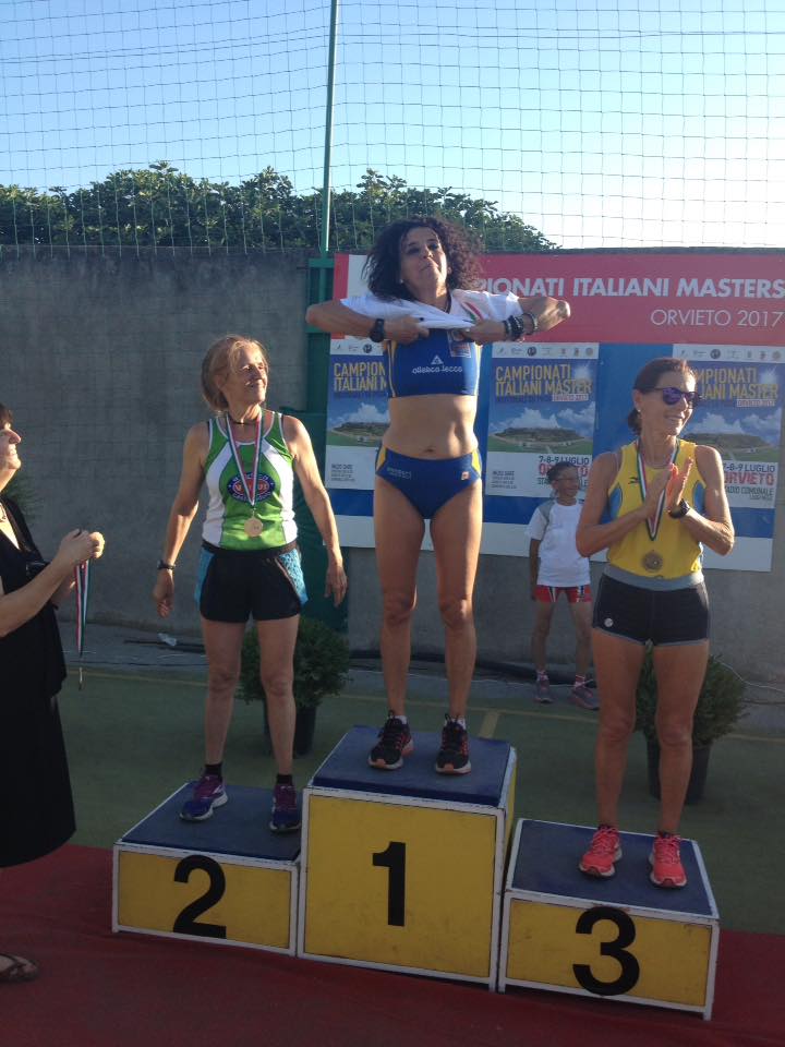ORVIETO- Tre giorni di gare per Elena Fustella ai campionati italiani Master e tre giorni in cui la lecchese di Brivio che difende i colori dell’Atl Lecco Colombo Costruzioni, sale sul podio ad indossare la maglia di campionessa italiana.