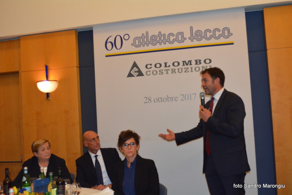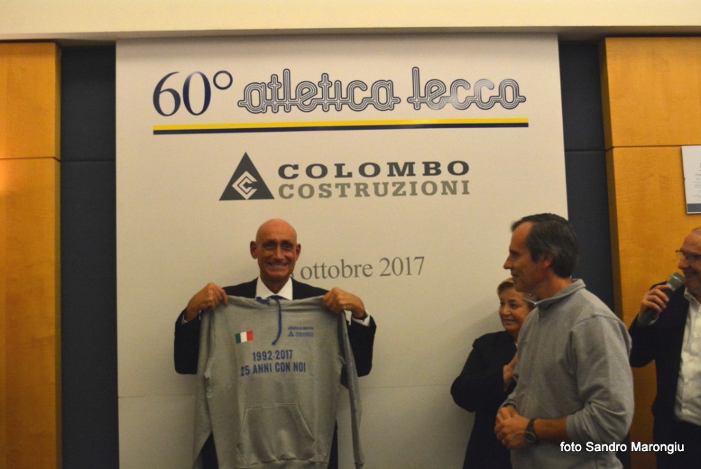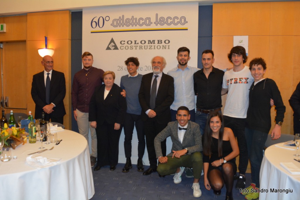 LECCO- Una sala gremita da atleti e ospiti illustri ha fatto da corollario ai festeggiamenti che sabato sera la grande famiglia dell’Atletica Lecco Colombo Costruzioni al NH Pontevecchio ha voluto condividere con lo sponsor architetto Luigi Colombo dell’omonima impresa di costruzioni rinomata in tutto il mondo e da 25 anni a fianco del sodalizio giallo blu, col presidente della Fidal Nazionale Alfio Gioni.