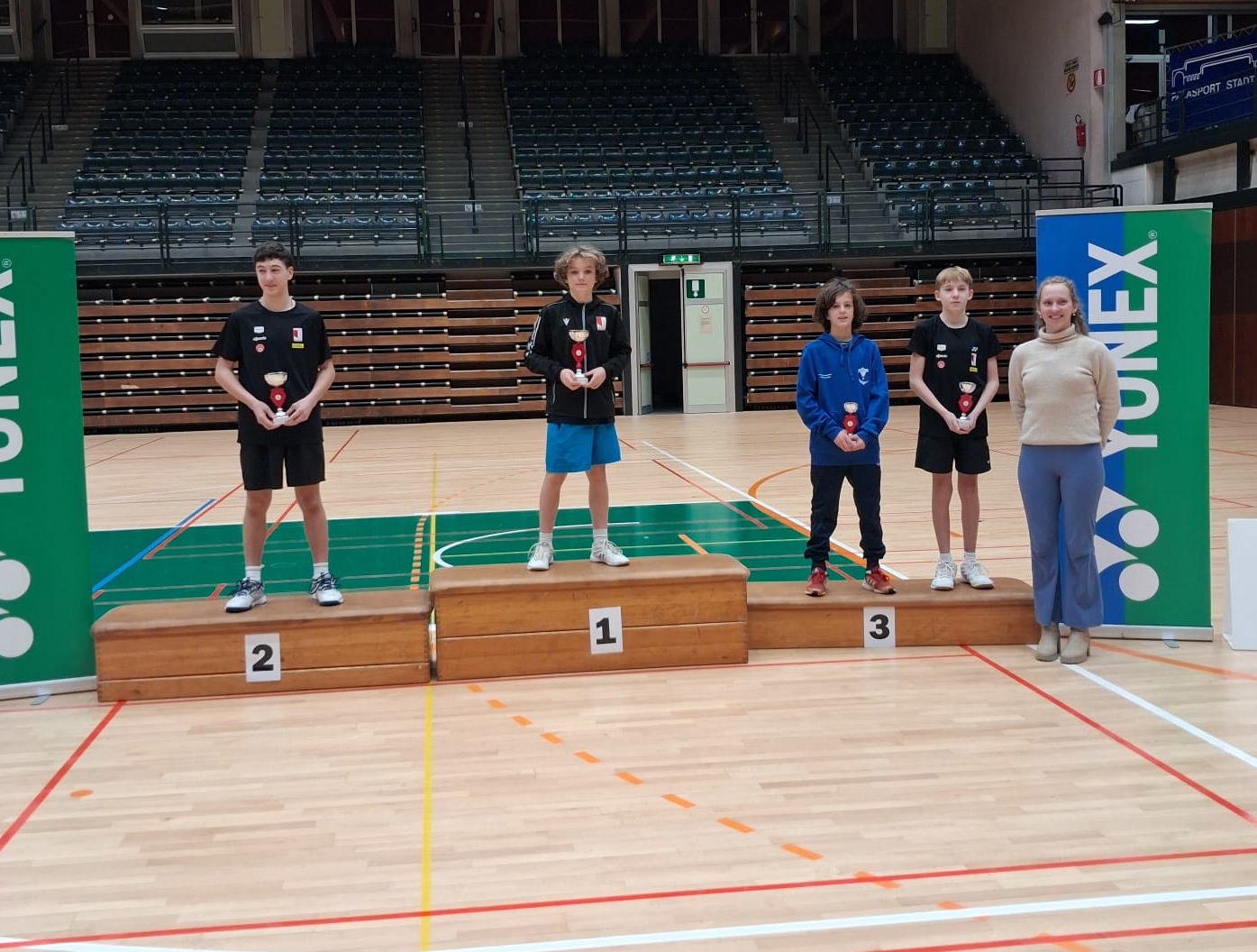 Un podio di bronzo è arrivato nel Singolare Maschile U15, dove Mattia è stato sconfitto in semifinale in tre set da Veronese (SSV Bozen Badminton), 15-9, 8-15 e 8-15.
