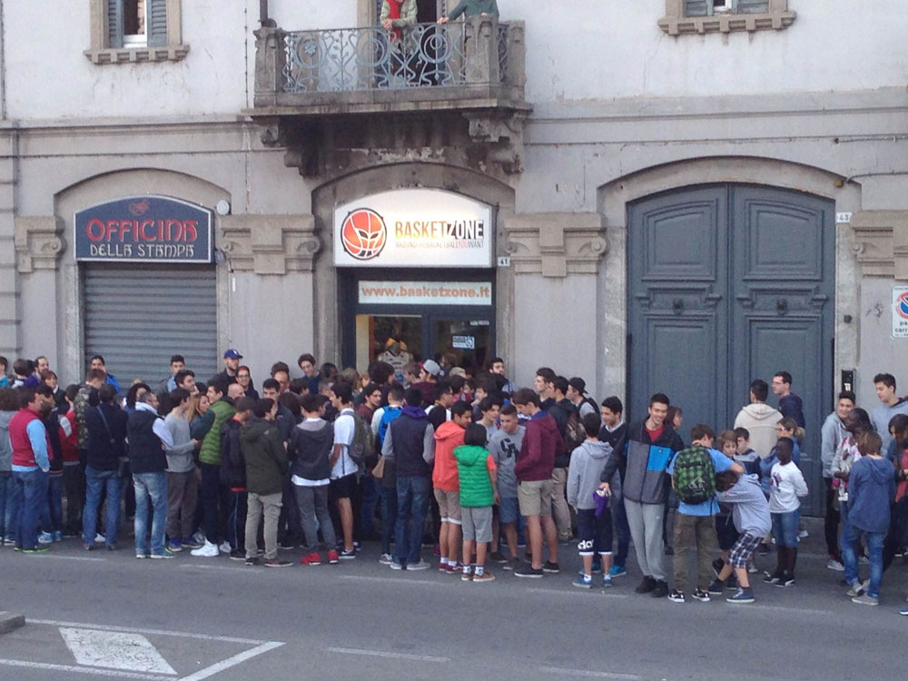 Per incontrare Metta si è accalcato di fronte al negozio un folto gruppo di cestisti e appassionati. Il giocatore è arrivato poco dopo le 20 con fidanzata al seguito, ha fatto le prime foto di rito con Arturo e poi ha autografato il Wall di Basketzone. Dopo aver salutato la folla presente fuori dal negozio si è accomodato e, con gentilezza, ha firmato autografi e fatto fotografie con tutti gli appassionati presenti.