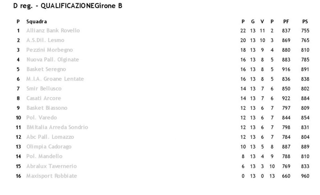 Il campionato di serie D affronta la penultima giornata del girone di andata con due gare per le lecchesi visto che la Nuova Pallacanestro Olginate aveva già giocato anticipatamente la sua partita contro Tavernerio il 21 dicembre scorso, vincendo 70 a 61. Il Robbiate alla ricerca della prima vittoria, giocherà giovedì 6 gennaio contro il Biassono, mentre Mandello scenderà in campo nella gara casalinga domenica 8 contro BmItalia Arredo di Sondrio.