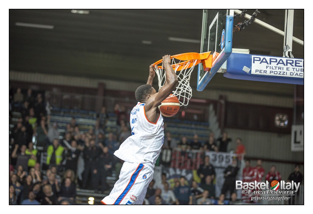 Il secondo tempo comincia con la penetrazione di Wright per il +1 esterno (47 a 46) dopo tre minuti. Lockett risponde a Hodge, Sanders realizza il canestro del +3 ospite (51 a 48). I bianco- neri provano a scappare con la bomba di Sanders, ma Abass tiene Cantù sul -4 (54 a 50) a metà del terzo periodo. I bianco- blu alzano il ritmo e con Hasbrouck, Johnson e Abass impattano a quota 56 nonostante la conclusione di Baldi Rossi. E’ Johnson a far sorpassare i padroni di casa sul 58 a 56 a due minuti dalla fine della frazione. Sutton prima infila due liberi, poi replica a Hodge rimettendo la situazione in perfetto equilibrio sul 60 a 60. L’appoggio allo scadere di Poeta, dopo l’affondata di Johnson, fissa il punteggio al termine del terzo quarto sul 62 a 62.
