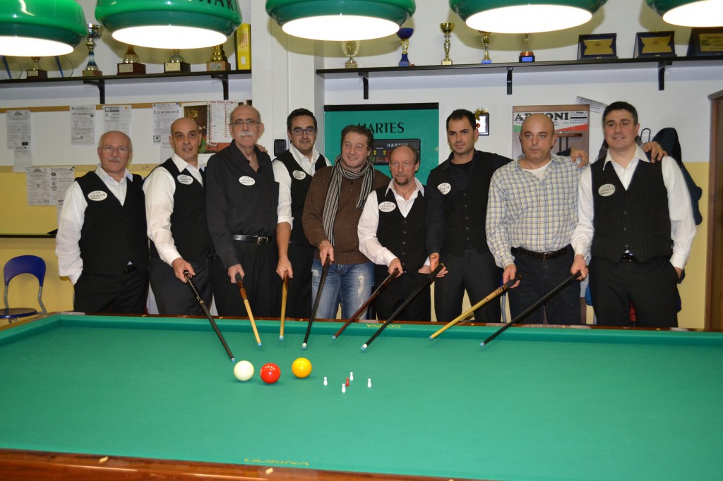 Alcuni giocatori della "Dolce vita" di Mandello protagonisti della stagione provinciale 2015 del biliardo.