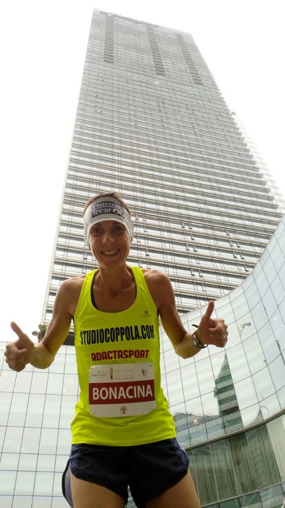 Bonacina , partita per le Filippine senza grandi aspettative , ha saputo invece realizzare un’ottima performance e dopo un ingresso in terza posizione nelle scale ed alcuni piani di assestamente si è lasciata passare da alcune atlete che ha poi recuperato tra il 40° e 50° piano dove ha raggiunto anche l’Australiana Reid. ” Li ho realizzato che il podio non era più un sogno, la sentivo respirare affannosamente , mentre io avevo ancora un buon passo tanto che negli ultimi 8 piani l’ho distanziata di 24 secondi”.