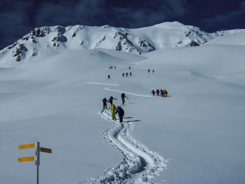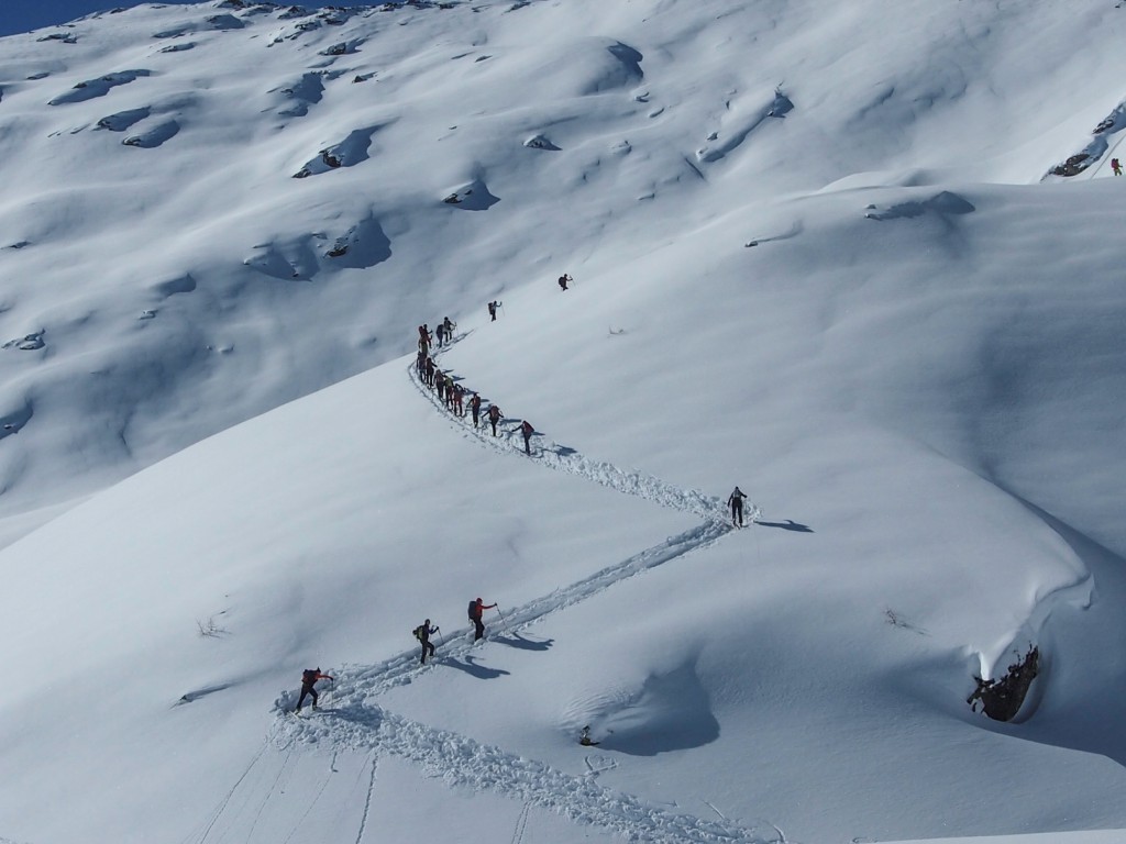 Le varie uscite pratiche hanno visto impegnata la Scuola da Dicembre ad inizio Marzo, in particolare nell’ordine: Sils Furtschellas (CH), Julierpass (CH), Pian dei Cavalli, Monte Colombana, Cima di Lemma, Col Serena e Mont Flassin (Valle d’Aosta) e l’uscita finale, recupero della seconda giornata, al Pizzo Meriggio: una ideale progressione di difficoltà e sforzo fisico crescente. Durante ogni gita sono state messe in pratica tutte le nozioni teoriche viste a lezione, provate le manovre di prevenzione e soccorso, illustrate meticolosamente le varie particolarità dell’ambiente montano innevato.