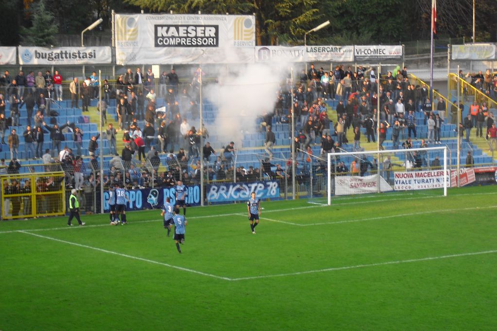 15′ Lecco in avanti alla ricerca del gol. In tribuna animi esasperati per la direzione di gara discutibile di Benassi
