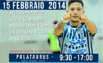 LECCO – Come preannunciato nel corso della conferenza stampa di ufficializzazione della nuova casa del fustal lecchese ovvero il Palataurus di Viale Brodolini a Lecco, la società Lecco Calcio a 5 organizza, sabato 15 febbraio 2014, una giornata dedicata agli studenti delle scuole elementari, medie inferiori e medie superiori che vogliono avvicinarsi al calcio a 5.