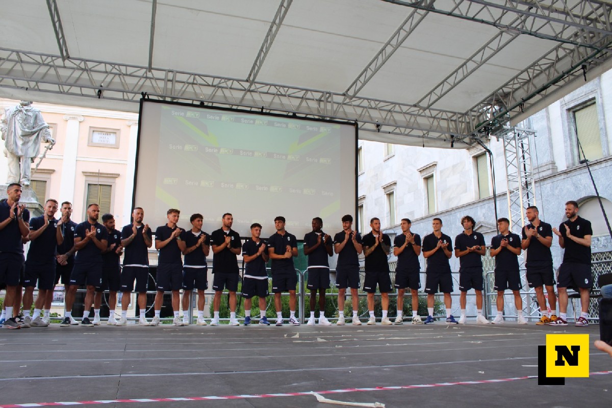 Dopo l’intervento del primo cittadino di Lecco sono state presentate le nuove maglie targate Legea, la prima e la seconda maglia e quella del portiere. La terza verrà mostrata al pubblico in uno speciale evento dedicato. Infine, gli sponsor della squadra bluceleste sono stati chiamati sul palco a salutare i tifosi presenti ribadendo l’impegno costante verso la società e verso il territorio lecchese: Andrea Galperti (Gruppo Galperti), Stefano Fiocchi (Fiocchi Munizioni) e Mauro Frigerio (LineeLecco).