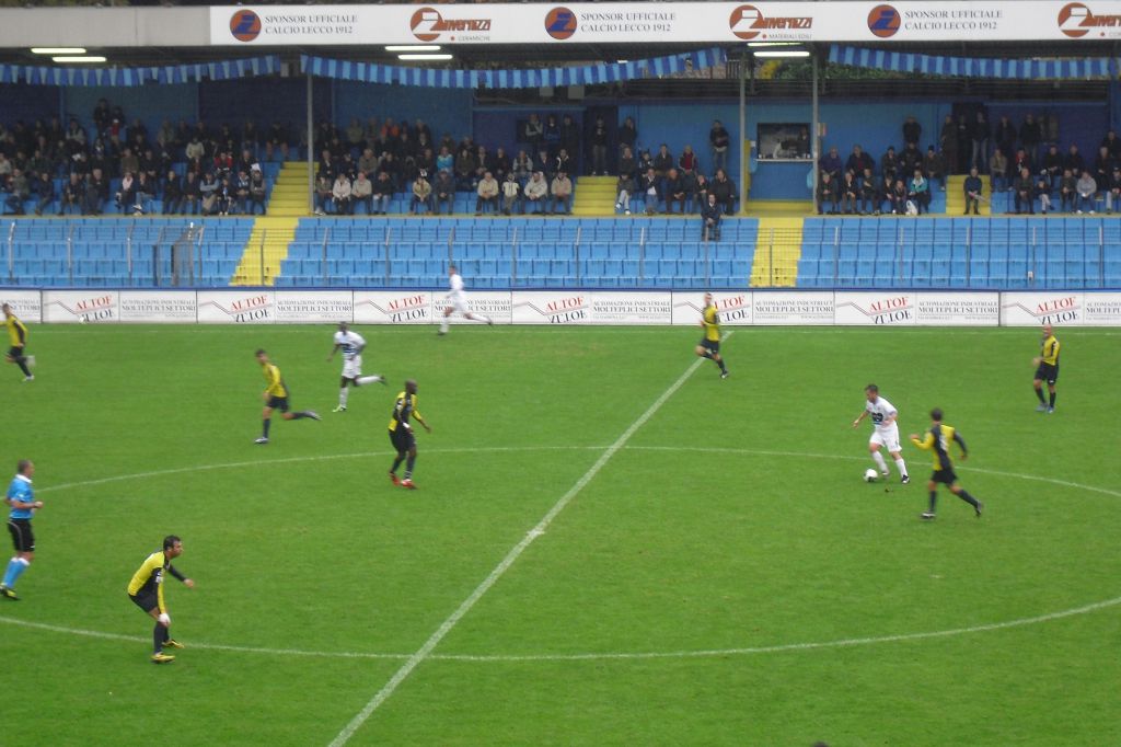 Il Lecco trova la prima vittoria in campionato. Al Rigamonti Ceppi, i blucelesti battono in rimonta il Santarcangelo col punteggio di 2-1: dopo lo svantaggio nel primo tempo a causa del gol di Graziani, la squadra di mister Pellegrino ribalta il risultato grazie alle reti di Fall e Mattaboni in apertura di ripresa. La punta classe 1991 è stato senza dubbio il migliore in campo: bene anche Durandi, con diverse parate decisive, e Maiese, schierato laterale sinistro. Senza lo squalificato Fabbro, Pellegrino si affida alla coppia Fall-Temelin in attacco. Recuperano Marietti e Galli, che vanno in panchina: per i blucelesti difesa a cinque.