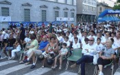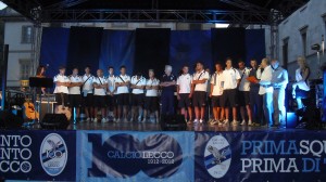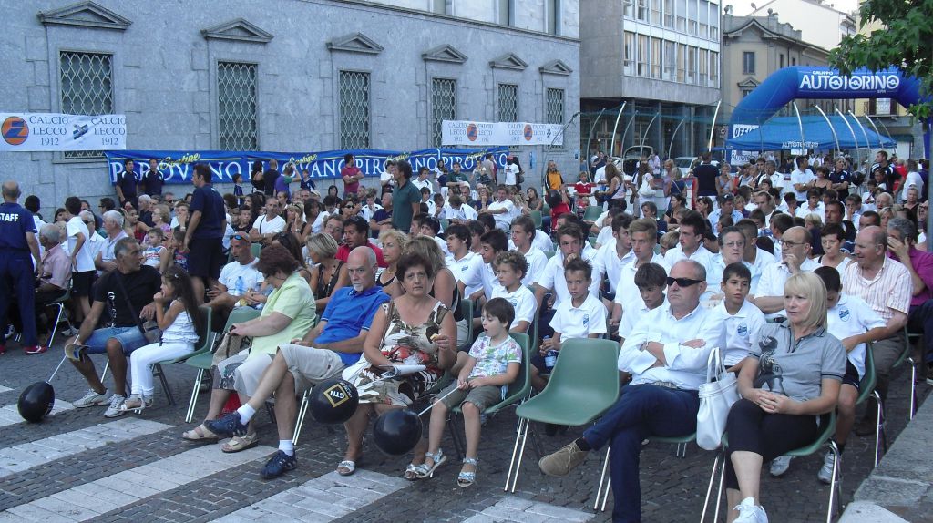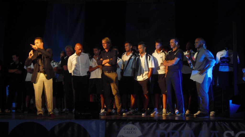 Grande entuasiasmo per la Calcio Lecco. In centinaia hanno partecipato alla presentazione della squadra bluceleste per l’anno del Centenario che si è svolta domenica sera in piazza Garibaldi. Grandissimo soprattutto il tifo: un gruppo ben nutrito di ultras ha infatti intonato cori per tutto il tempo in cui i giocatori sono stati su palco. “Ringrazio questi tifosi – esordisce mister Alessio Delpiano –. I loro canti mi fanno venire i brividi perché mi ricordano l’ultima stagione in cui ho giocato qui”.