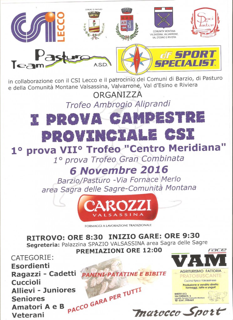 003PASTURO – Mancano pochi giorni alla prima prova del trofeo Centro Meridiane, valido per il campionato provinciale Csi di corsa campestre, a Pasturo con la locale società sportiva in regia, domenica 6 novembre si disputerà la prima delle quattro giornate in programma.