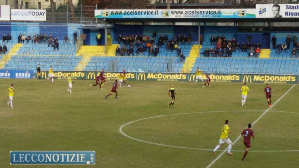 Per la 18esima giornata di campionato il Lecco deve fare a meno del bomber brasiliano Carlos França, fermo per infortunio, e del giovane centrocampista Davide Di Gioia, squalificato per somma di ammonizioni, ma ai giocatori in campo bastano pochi minuti per trovare la giusta quadratura e al 19’ passano in vantaggio con Cardinio che insacca di testa sul cross di Ronchi, passano solo due giri di orologio e il numero 11 bluceleste firma la sua doppietta: punizione da sinistra per il Lecco, la batte Baldo, la palla va a Vignali che passa a Cardinio cha va a concludere a rete. Gli ospiti non si vedono e al 26’ c’è ancora una punizione per il Lecco, la batte ancora Baldo e stavolta è il difensore Turati che con un colpo di testa la trasforma in gol. I blucelesti riescono a guadagnarsi ancora buone occasioni, ma riescono a finalizzarle, allo scadere di minuti hanno un leggero calo, ma gli ospiti non ne approfittano e si torna negli spogliatoi con il tabellone fermo sul 3-0.