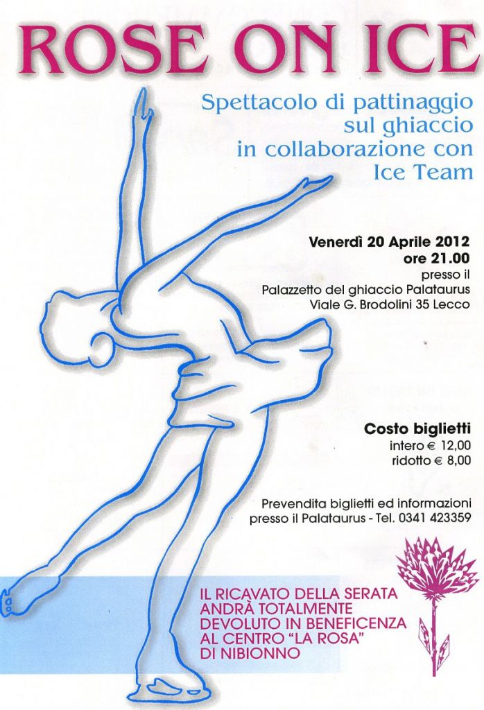 LECCO – Pattinare per beneficenza. Lo si farà domani sera, al Palataurus, quando andrà in scena lo spettacolo Rose On Ice che vedrà sul ghiaccio lecchese pattnatori e pattinatrici dell’Ice Team. La serata prenderà il via alle 21, al palaghiaccio di via Brodolini, 35 a Lecco. Il ricavato della serata andrà interamente devoluto in beneficenza al Centro La Rosa di Nibionno. Informazioni e prevendita biglietti: 0341 – 423359