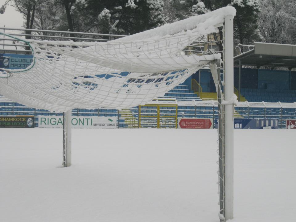 LECCO – Rinviata. L’annuncio ufficiale da parte della Lega Nazionale Dilettanti arriverà soltanto domani mattina, sabato, ma è ormai scontato che la partita Lecco – Fersina Perginese non sarà disputata domenica 16 dicembre. La neve caduta copiosa sulla città ha reso impraticabile il terreno e gli spalti del “Rigamonti-Ceppi”, coperti da almeno dieci centimetri di manto nevoso.