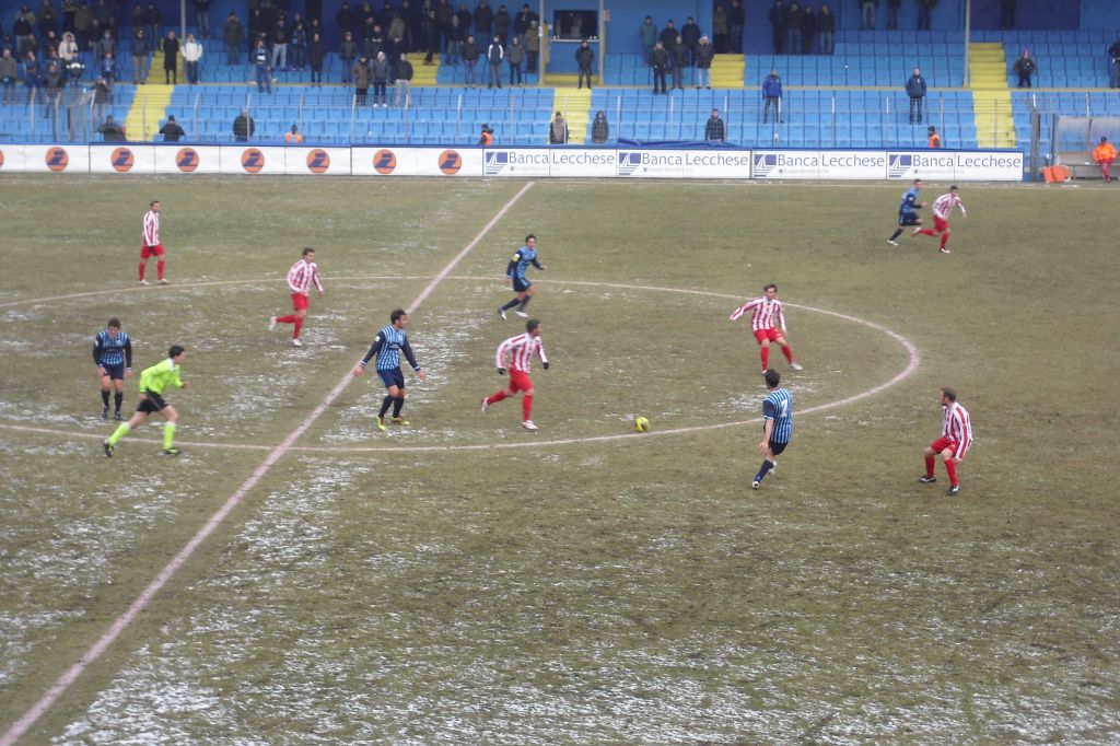 dopo Aprea devia in angolo un tiro preciso di Fantini. La paretita è vivace: al 59’ azione personale di Fabbro che calcia di poco alto. Al 65’ invenzione di D’Amico che libera Dell’Acqua davanti a Rossi che para il suo tiro. L’attaccante esce fischiato dal pubblico a cui rivolge un brutto gesto di polemica. Al 79’ occasione fotocopia della precedente per il Lecco, con Valtulina che di piatto si fa parare il tiro del possibile 1-1. All’86’ Fabbro ci prova da posizione impossibile, la palla va in curva nord. Nell’azione successiva in contropiede Di Quinzio parte in posizione dubbia e fulmina Aprea in uscita. Al 90’ viene espulso Sciannamè per aver dato una presunta manata a Di Quinzio. Sul 2-0 la partita è praticamente chiusa: il Lecco è ora atteso da tre trasferte che segneranno definitivamente la stagione, oggi apparsa compromessa.