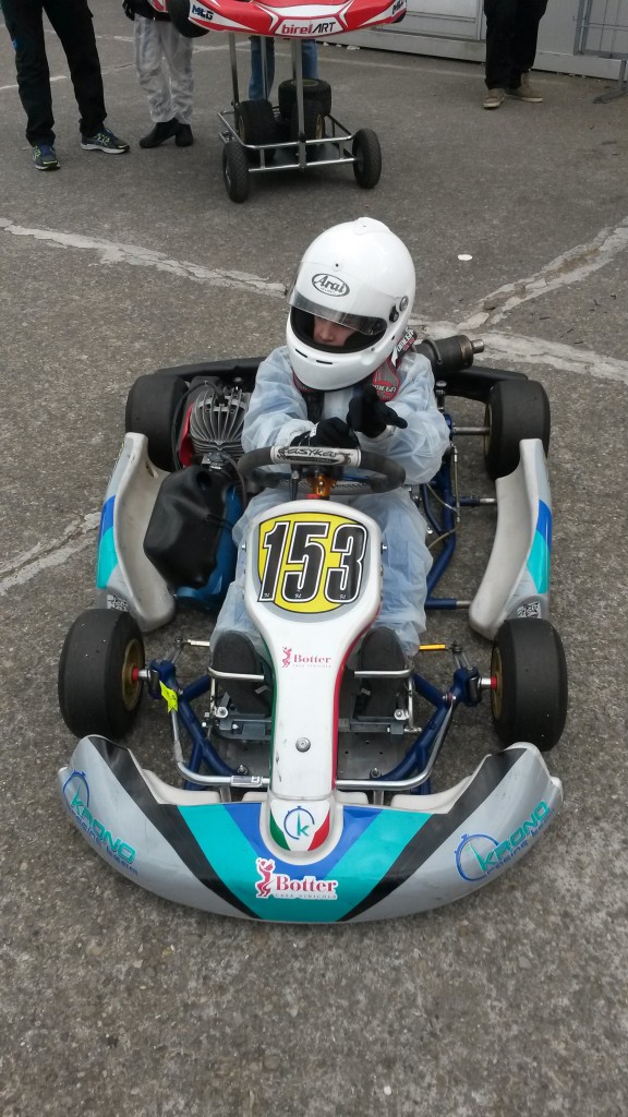 Weekend intenso e reso ancor più difficile da una situazione meteo imprevedibile e in continuo mutamento. Il sabato, giornata di prove libere, si è presentato con una giornata grigia e ventosa senza pioggia e tutti i pilotini hanno sviluppato assetto del kart naturalmente per una pista asciutta.