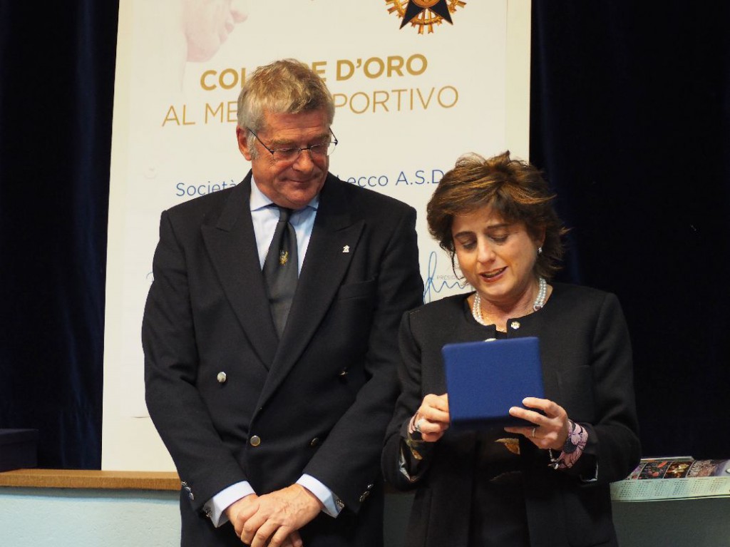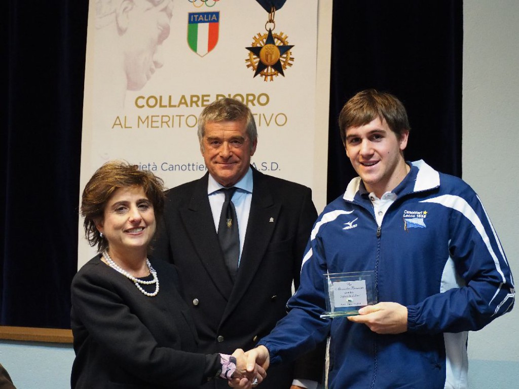 Nel corso della serata una targa ricordo, consegnata da Sua Eccellenza il Prefetto Bellomo, è andata anche ad Alessandro Bonacina, l’alfiere che ha portato a Roma lo stendardo della Canottieri.