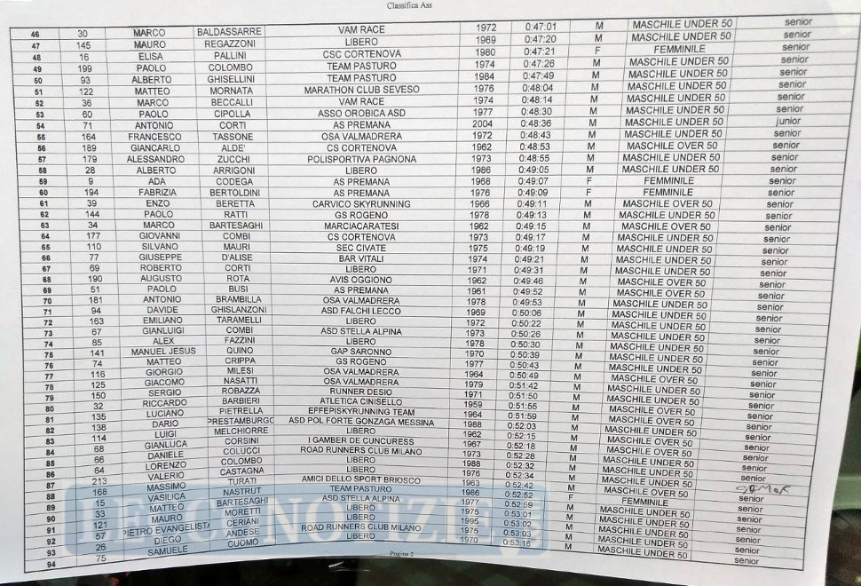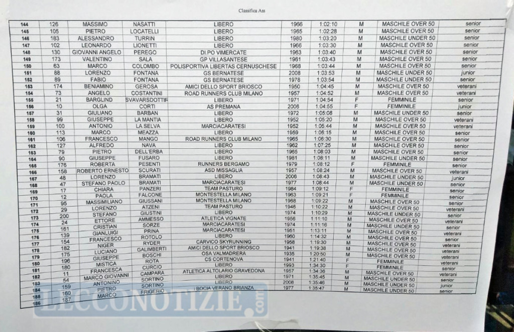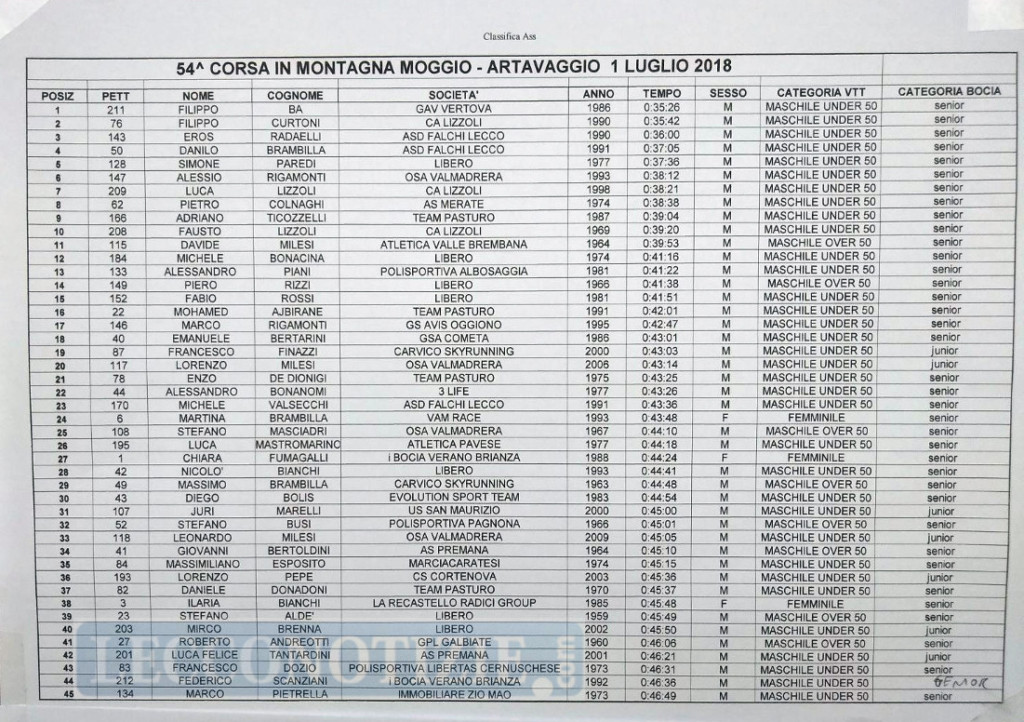Ai nastri di partenza posti in centro paese i runner hanno macinato il tradizionale percorso di 5 km per 760 m di dislivello con traguardo piazzato ai Piani di Artavaggio. Il più veloce è stato Filippo Ba che ha dominato la gara, alle sue spalle Filippo Curtoni (C.A. Lizzoli) e sul terzo gradino del podio Eros Radaelli dei Falchi di Lecco.