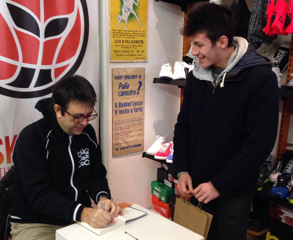 LECCO – Questa mattina Flavio Tranquillo ha incontrato i suoi numerosi fan al Basketzone di Lecco, il negozio di articoli per cestisti di Arturo Fracassa che già la scorsa primavera aveva portato in città Metta World Peace, giocatore americano che ora veste la maglia dei Los Angeles Lakers.
