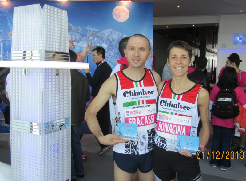 Gli oltre 1000 concorrenti provenienti da 30 nazioni erano al via sui 2120 gradini, che dall’ 8° piano li portava all’’osservatorio posto al 100° piano. Ai nastri di partenza anche due italiani, i coniugi Dario Fracassi e Cristina Bonacina del GP Talamona che hanno colto, rispettivamente, l’ottava e sesta piazza assoluta di categoria. La Calolziese Bonacina, ha pagato il lungo viaggio e le sette ore di fuso orario ma con una condotta di gara regolare ha conquistato un buon 6° posto in 17’34, gara vinta dall’australiana Susy Walsham in 14’32”, davanti alla cinese Gan Xuen 15’27”.