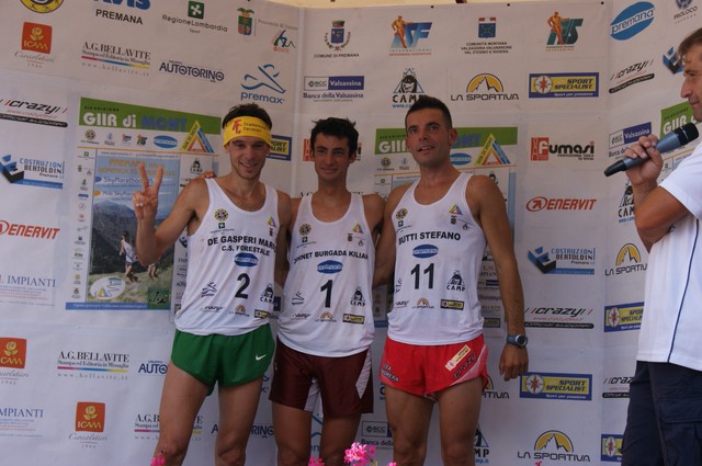 Dietro di lui un formidabile, ma anche sfortunato, Marco De Gasperi (Forestale) che dopo essere risciuto a staccare lo spagnolo guadagnando un vantaggio di 3 minuti, poco prima dell’Alpe Deleguaggio, a meno di 7 chilometri dall’arrivo, è stato raggiunto e sorpassato da Burgada che nel discesone finale non si è fatto raggiungere mentre De Gasperi nel tentavivo di riagguantarlo è ruzzolato a terra. Incidente che comunque non ha compromesso la gara chiusa al secondo posto. Sul terzo gradino del podio uno splendido Stefano Butti (Osa Valmadrera) autore di una gara davvero splendida.