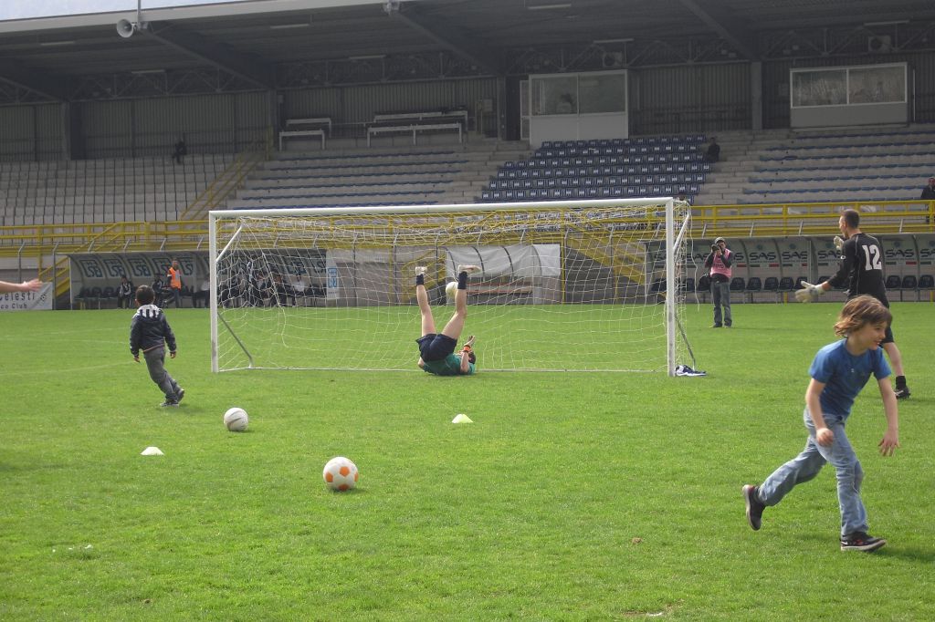 La festa è cominciata alle 13 con il pranzo sugli spalti, poi alle 13.30 una sfida ai calci di rigore tra genitori e figli, mentre alle 14 il gruppo etnico Elikya ha allietato gli spettatori con canti e balli per 20 minuti. Un quarto d’ora prima di Lecco-Treviso sono scesi in campo per un saluto anche il sindaco Virginio Brivio, il vicario episcopale Bruno Molinari, i presidenti delle associazioni coinvolte e il socio della società di via don Pozzi Salvo Zangari. Inoltre è stata consegnata una maglietta bluceleste a Matteo, bambino che ha vinto la gara dei rigori. Momento culminante della manifestazione è il match Lecco-Treviso (finito poi 0-2). Purtroppo la festa è stata parzialmente rovinata dalla pioggia che ha cominciato a scendere verso le 14.