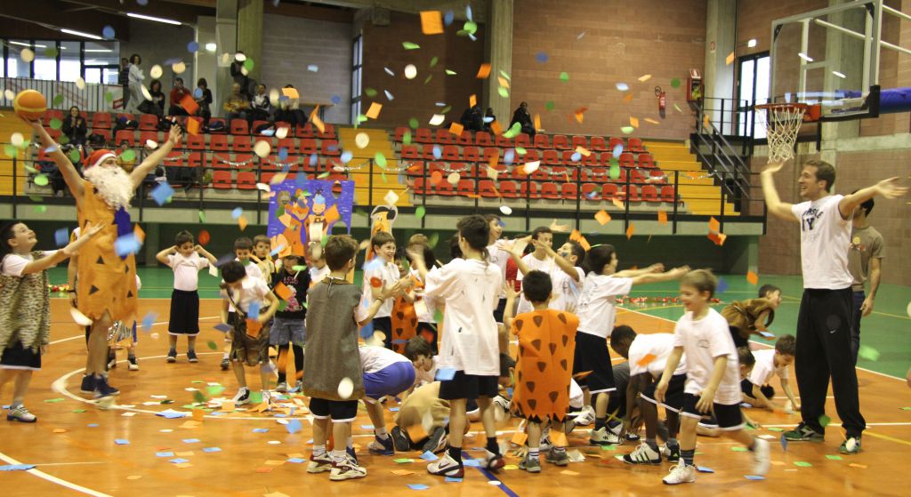A Calolziocorte la festa è durata meno – dalle 16.30 alle 18.30 – ma è stata un successo senza precedenti. “Ci siamo impegnati molto – ha dichiarato la responsabile del minibasket Gloria Bussola – i ragazzi del mio staff hanno fatto un lavoro super. Abbiamo portato i bambini a fare un viaggio nel tempo con diversi giochi, partendo dalla preistoria e giungendo sino ai giorni nostri. Gli istruttori, vestiti a tema, hanno contribuito in maniera decisiva a far divertire il centinaio di bambini presenti, dai pulcini fino all’U13. L’arrivo di Babbo Natale – che ha portato regali per tutti – ha concluso alla grande la serata.”