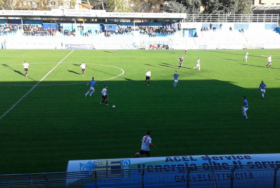 A metà del primo tempo, però, la situazione si ribalta: i milanesi prendono in mano la situazione e iniziano a spingersi in profondità, al 28’ ci prova Pelucchi, ma Frattini blocca, mentre un minuto dopo a rendersi protagonista è Battaglini, ma ci pensa di nuovo l’estremo difensore bluceleste che salva coi piedi. Il 41’ del primo tempo, invece, registra una buona costruzione di Vignali per Capogna, che passa a Cardinio: il numero 11 blueleste crossa al centro, ma non trova nessuno e allo scadere dei minuti di gioco il risultato resta fermo sullo 0 a 0.