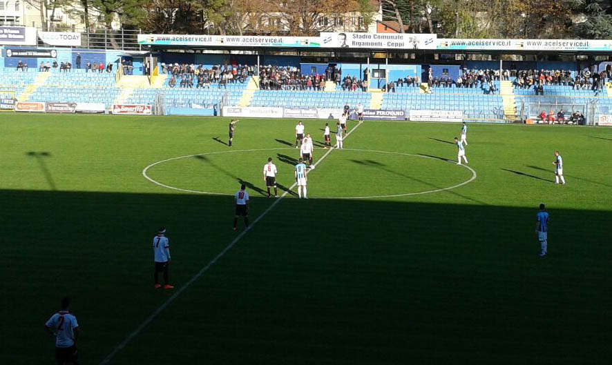 Al fischio d’inizio i blucelesti cercano subito di insidiare l’area ospite con Cardinio, ma Pelucchi lo ferma con una scivolata (1’), passa solo un giro di orologio e a spingersi in avanti è Capogna, ma il fischio el fuorigioco spegne la sua azione. Al 7’ i padroni di casa guadagnano una punizione dai 20 metri, Buonocunto va al tiro, ma la palla finisce di poco a lato: nulla di fatto. Al 13’ a farsi vedere è ancora il numero 10 bluceleste che crossa per Capogna: la punta colpisce di testa, ma la palla finisce alta sopra la traversa.