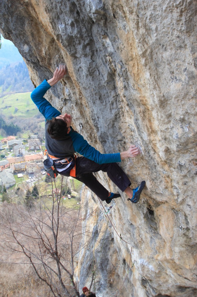 Il 9a+ è “Goldrake”, una linea incredibile, chiodata da Camos negli anni ’80 e rimasta ad attendere la prima salita fino al 2010, ad opera di Adam Ondra (unico ripetitore, fino a ieri, Gabriele Moroni).