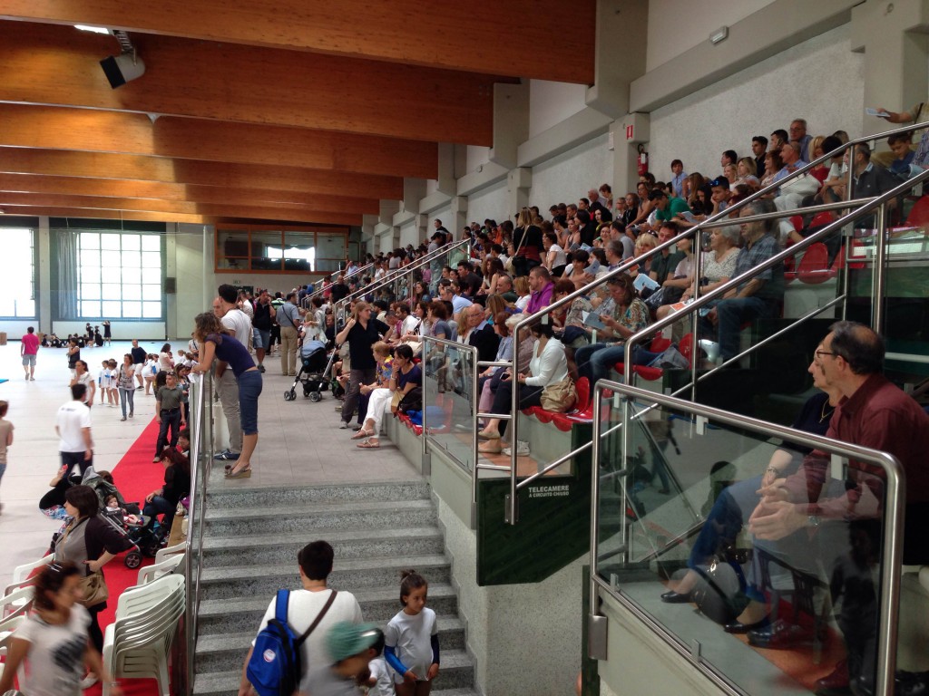 I giovani ginnasti della scuola hanno iniziato a esibirsi alle ore 14.30. La giornata era sostanzialmente divisa in due, come ci ha raccontato Alberto Butta, consigliere della ASD Ghislanzoni GAL.
