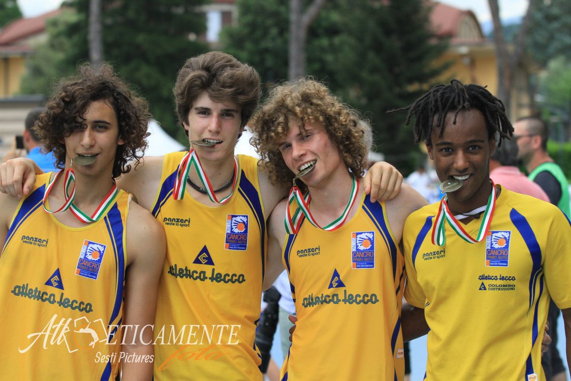 Medaglia di bronzo anche per la staffetta 4x400m maschile composta da Abenezer Mandelli, Lorenzo Gilardoni, Luca Charrouf e Mattia Papini capaci di portare il testimone al traguardo in 3’22”63 tempo che migliora di quasi 5” il vecchio primato provinciale che dal 1993 apparteneva al Gs Comense con 3’26”93.