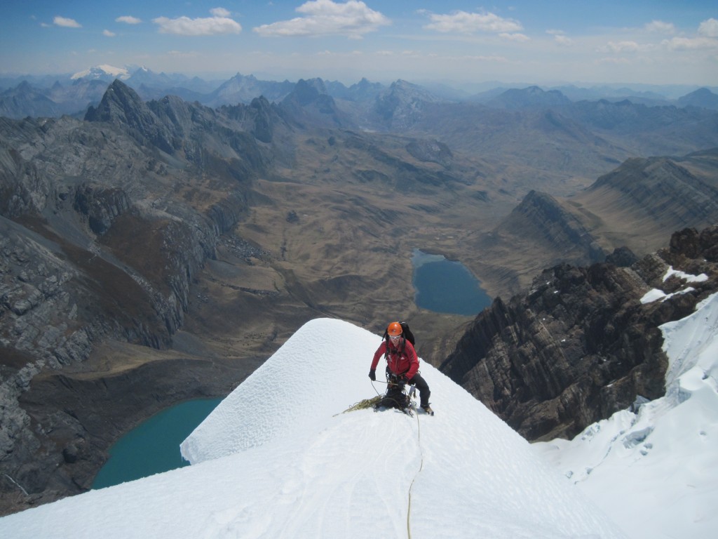 Visto che nella zona non mancano certo le belle montagne su cui tracciare nuovi itinerari, i due non hanno faticato a trovare un nuovo target: “Abbiamo rivolto le nostre attenzioni al Jirischanca Chico, individuando una linea di salita su una specie di spallone terminante presso una elevazione della cresta, dove passa un’altra via. La salita è stata fatta l’8 agosto: sono 7 tiri per circa 400 metri di sviluppo con difficoltà complessiva D+, ovviamente su neve e ghiaccio”.