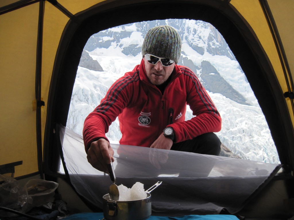 “Siamo arrivati al campo base il 31 luglio e nei giorni successivi abbiamo trasportato il materiale, installato il campo alto e fatto un sopralluogo per studiare le condizioni della parete – racconta Silvano – Purtroppo il rischio di scariche dovute all’eccessivo caldo era elevato e, rispetto al 2008, quando avevamo adocchiato l’itinerario, le condizioni della neve e del ghiaccio sono cambiate moltissimo. Così abbiamo deciso di abbandonare il progetto iniziale”.