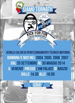 Quindi dal 20 settembre tutti all’Hm Palace di Barzio, inizia la Barzio Kick For Fun dove il calcio…. È solo divertimento!!!!!