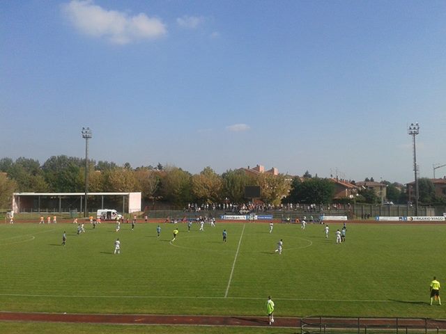 La Folgore Caratese sembra incentrare totalmente il gioco sulla difesa, aspettando l’errore della Calcio Lecco per ripartire e sorprendere gli avversari. Un gioco riuscito alla perfezione nel primo tempo: la Calcio Lecco si porta continuamente in avanti, ma non trova sbocchi. La Caratese blocca ogni costruzione di gioco messa in campo dai blucelesti, che non riescono così a finalizzare. Al 21’ la Calcio Lecco parte all’attacco con Capogna, ma la difesa biancoazzurra chiude, al 25’ un colpo di testa di Bugno finisce in un nulla di fatto e due minuti dopo Sperduti blocca il tiro di Buonocunto fatto su punizione al limite dell’area. L’unica vera e propria occasione che resta ai blucelesti è al 35’ con Di Gioia, ma ci pensa di nuovo l’estremo difensore della compagine brianzola, che evita di far violare la propria rete mando la palla in angolo. Ed è al 42’ che la tattica di gioco della Caratese ottiene risultato: Valente approfitta di un buco nella difesa bluceleste e manda a rete una palla imparabile. Sul limite della fine del primo tempo Cardinio ha l’occasione del pareggio: superati tutti gli avversari, compreso il portiere, sbaglia a porta vuota, lasciando così che si torni negli spogliatoi sul’ 1 a o.