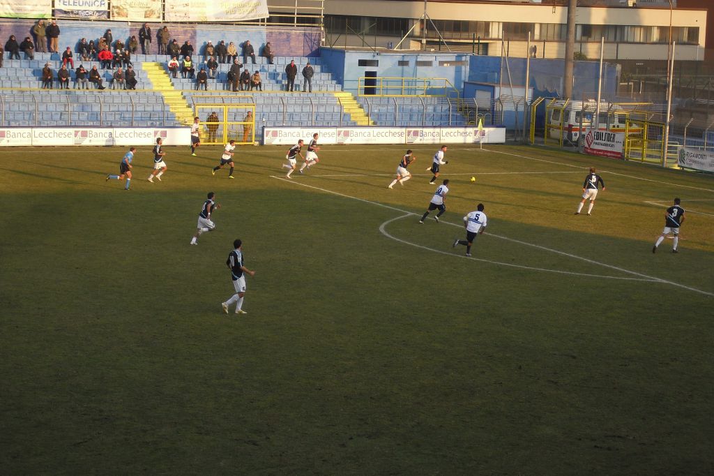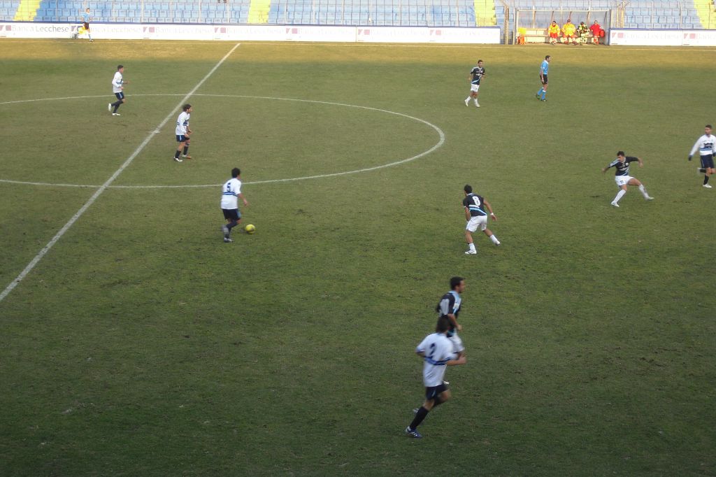 L’inizio del Lecco è subito arrembante: al 2’ Cavagna non ribadisce in rete da due passi un’ottima punizione di D’Amico. Due minuti più tardi Rudi si perde Rosso la cui girata è sul fondo, sintomo che gli automatismi della difesa di Pellegrino non sono ancora a posto. Al 8’ si rivede il Lecco con un’iniziativa di cavagna stoppato da Paroni. Un minuto più tardi diagonale di Fabbro deviato.