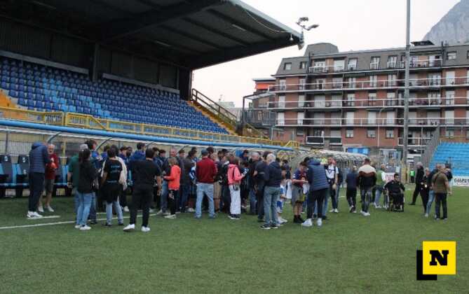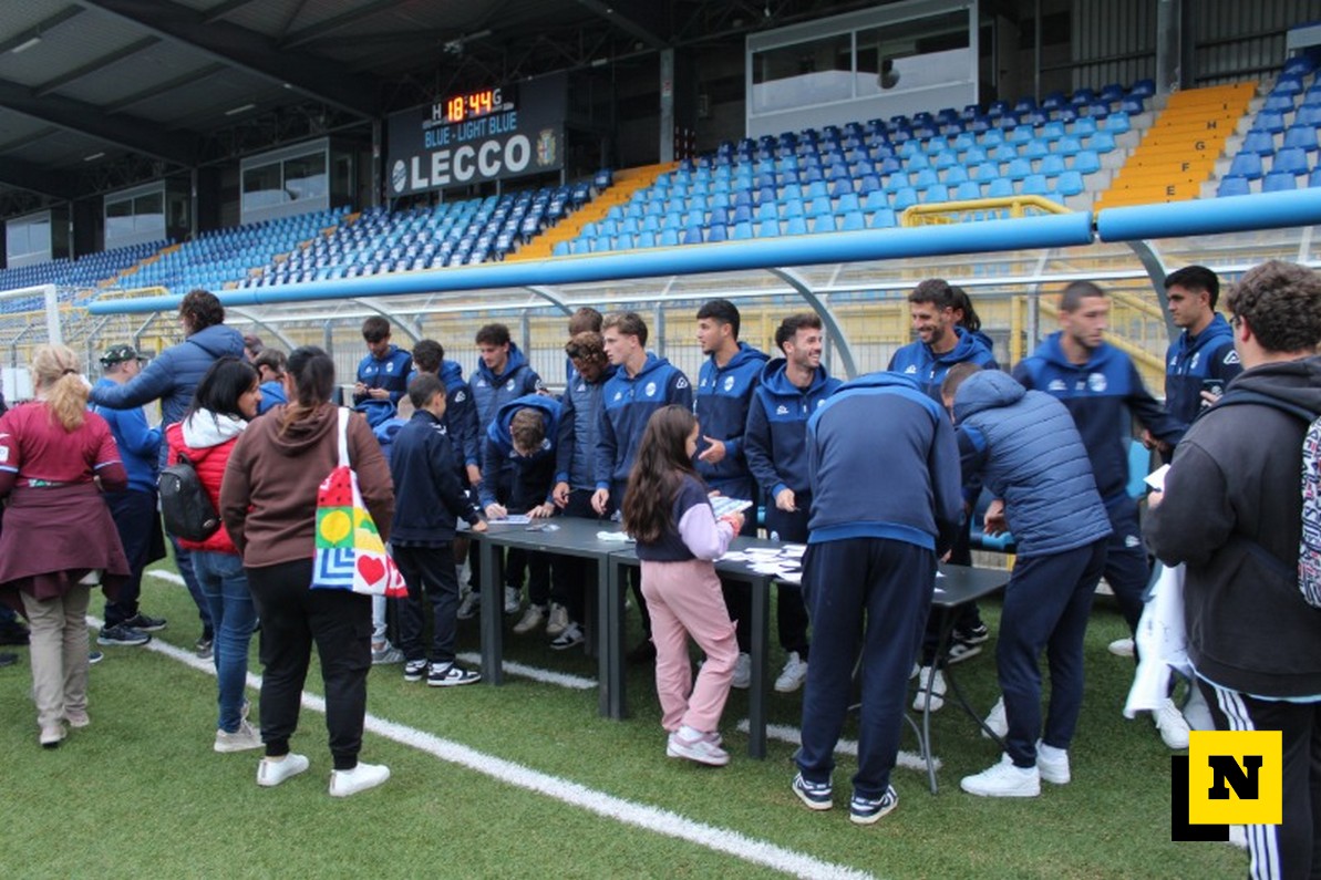 LECCO – Le porte del Rigamonti-Ceppi si sono aperte per il primo Meet&Greet della stagione. Un evento completamente dedicato ai tifosi blucelesti dove erano presenti tutti i giocatori della prima squadra, lo staff tecnico di mister Federico Valente e il presidente Aniello Aliberti.