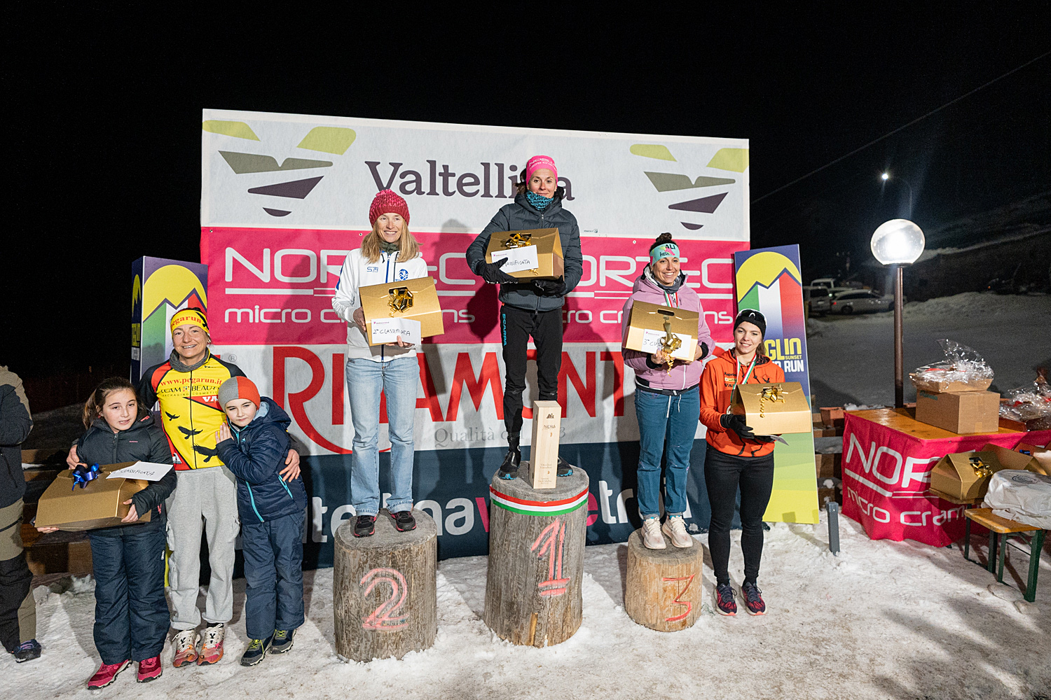 Per la bormina d’adozione trionfo in 55’59: “Oggi la giornata era stupenda e il clima perfetto – ha dichiarato -. Anche se la neve soffice e un virus intestinale nei giorni scorsi ha reso la salita ancora più dura, con Corinna che non mi ha lasciata respirare. In discesa ho cercato di dare tutto e sono riuscita a fare la differenza”. Argento per Ghirardi (Skyrunning Adventure ASD) in 56’53 seguita da Alice Minetti (Boves Run Aliaipiedi) in 59’18”. 4^ e 5^ piazza per Elisa Pallini (ASD Pegarun – 1h03’25”) e Aurora Bosia (ASD Falchi Lecco – 1h03’52”).