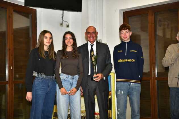 “Dal 1994 ho affiancato Lucia Morandi come segretario (dalla quale ho imparato molto) e ho collaborato a mantenere saldo il timone della società: anche nel 2025 abbiamo partecipato alle Finali Nazionali dei Cds Argento nella categoria Assolute maschili e femminili, nella categoria Argento femminile e negli Under 23 maschile. Abbiamo portato 93 atleti ai Campionati Italiani individuali e qui mi sento di ringraziare voi atleti ed i vostri allenatori per l’impegno profuso, le società amiche che al cambio di categoria da Cadetti e Allievi convergono sul nostro sodalizio: Polisportiva Mandello, Atletica Cassago, San Maurizio Erba, Atletica Oggiono 87, Virtus Calco, Atletica Merate e i loro allenatori di riferimento”.
