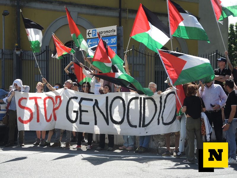 Da sottolineare anche la presenza di un presidio “Stop Genocidio” (VIDEO) con bandiere palestinesi pro Gaza proprio davanti alla sede delle Questura in via Leonardo Da Vinci a Lecco.