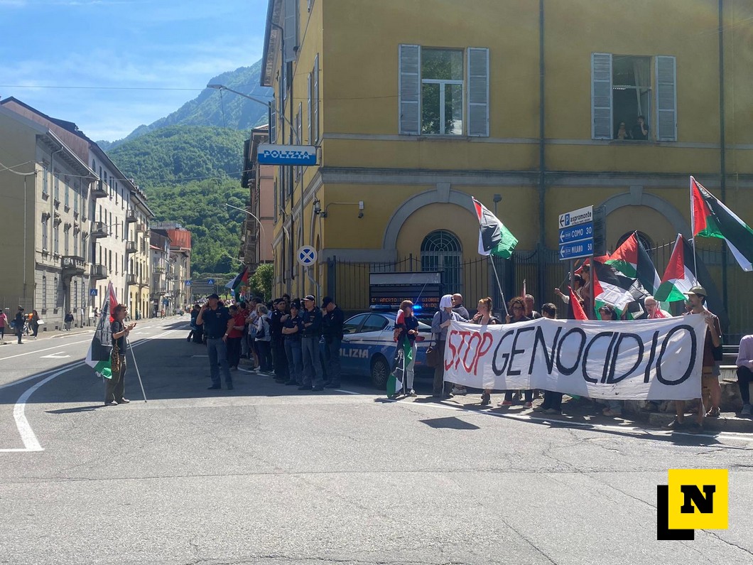 Da sottolineare anche la presenza di un presidio “Stop Genocidio” (VIDEO) con bandiere palestinesi pro Gaza proprio davanti alla sede delle Questura in via Leonardo Da Vinci a Lecco.
