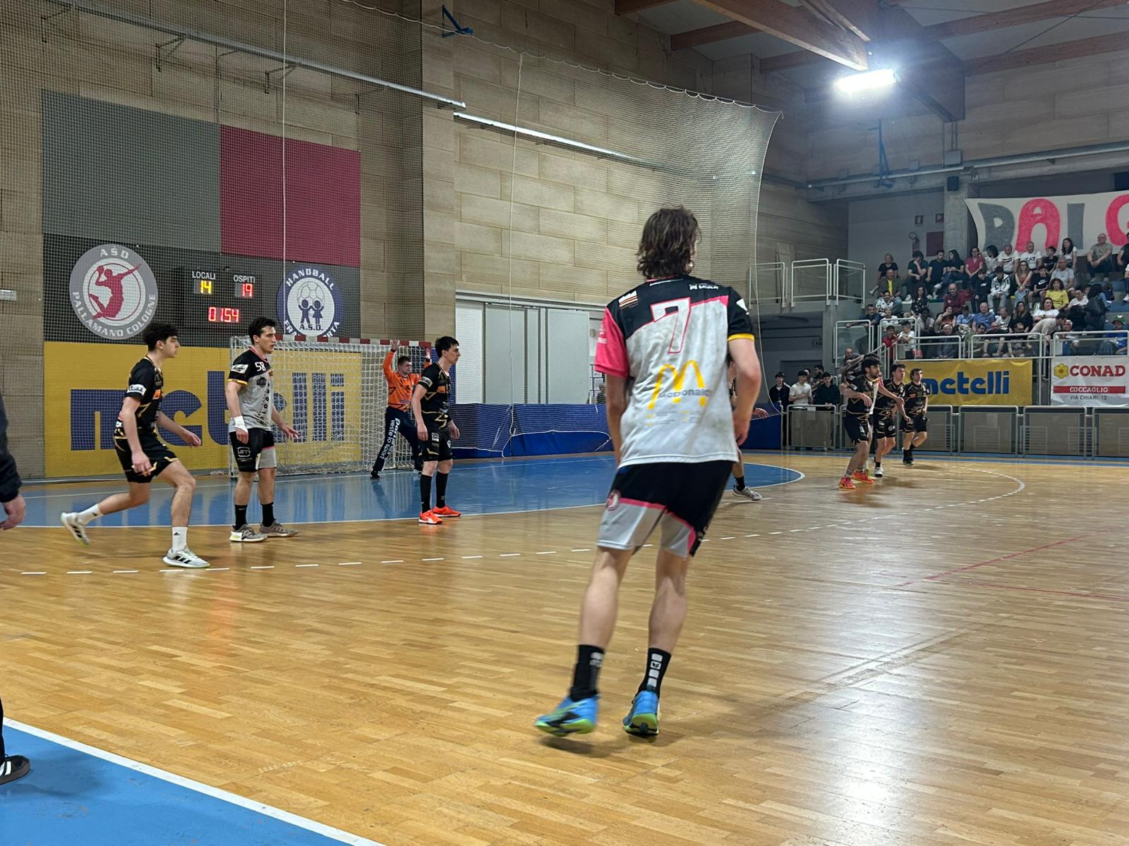 Gara di ritorno delle semifinali dei play off del campionato di Serie A Silver, con il Salumificio Riva Molteno che si arrende 32-31 (primo tempo 13-18) sul campo bresciano del Metelli Cologne