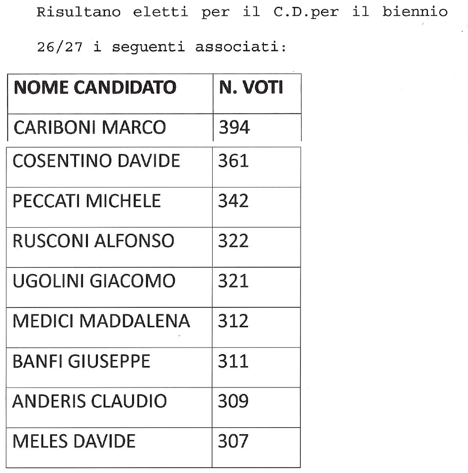 Eletti i nove consiglieri: cinque alla lista Peccati e quattro alla corrente Cariboni