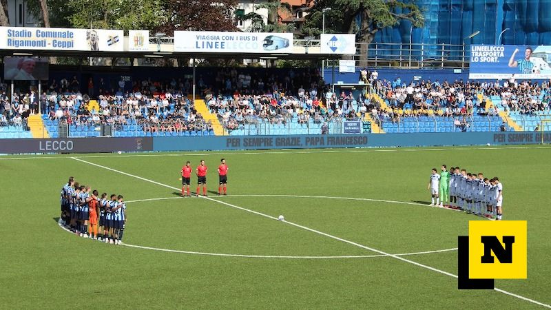 Un minuto di ricordo per la scomparsa di Papa Francesco prima dell’inizio dell’ultima partita del Rigamonti-Ceppi. Il Lecco parte in avanti nei primi minuti di gioco schiacciando i bergamaschi nella propria metà campo ma, non riesce ad avvicinarsi alla porta difesa da Vismara (A).