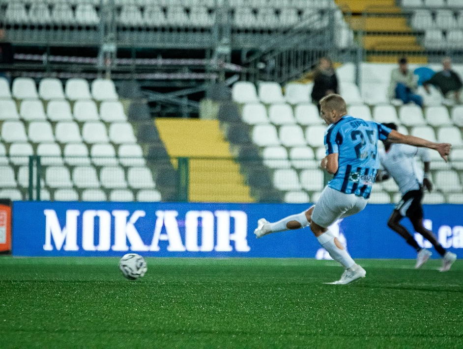 Al 24′ del primo tempo alla prima incursione bluceleste nell’area avversaria, Piran tocca la palla con la mano. Dal dischetto Leon Sipos è glaciale e spiazza il portiere avversario. La Pro Vercelli prova in tutti i modi a mettere la palla in rete ma sulla sua strada trova un super Furlan che non lascia passare nulla.