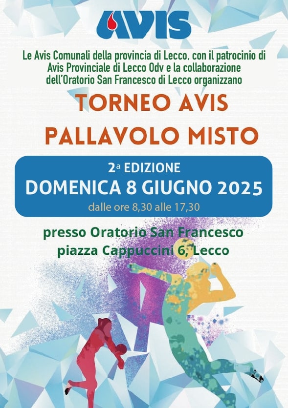 LECCO – Dopo il successo della prima edizione l’oratorio San Francesco si prepara ad ospitare nuovamente il Torneo AVIS Pallavolo Misto. La manifestazione sportiva, promossa e organizzata dalle AVIS Comunali della provincia di Lecco, si terrà domenica 8 giugno. La giornata di sport sarà un’ottima occasione per stare insieme, divertirsi, rafforzare i legami di amicizia e coltivarne anche di nuove, il tutto nella cornice della sensibilizzazione alla donazione di sangue.