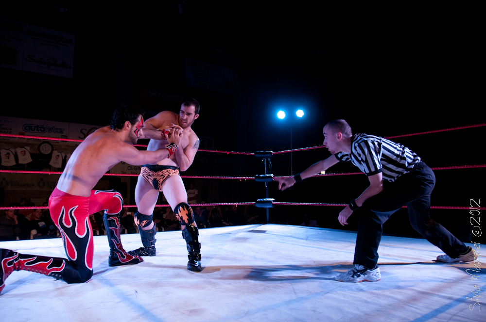 I lottatori della Italian Championship Wrestling si sono sfidati senza esclusione di colpi. Balzi, mosse spettacolari e sporchi trucchi hanno caratterizzato la serata, ottimamente condotta da un presentatore d’eccezione, il comico di Zelig Daniele Raco, anche conosciuto sui ring italiani come Kombat Komedian.