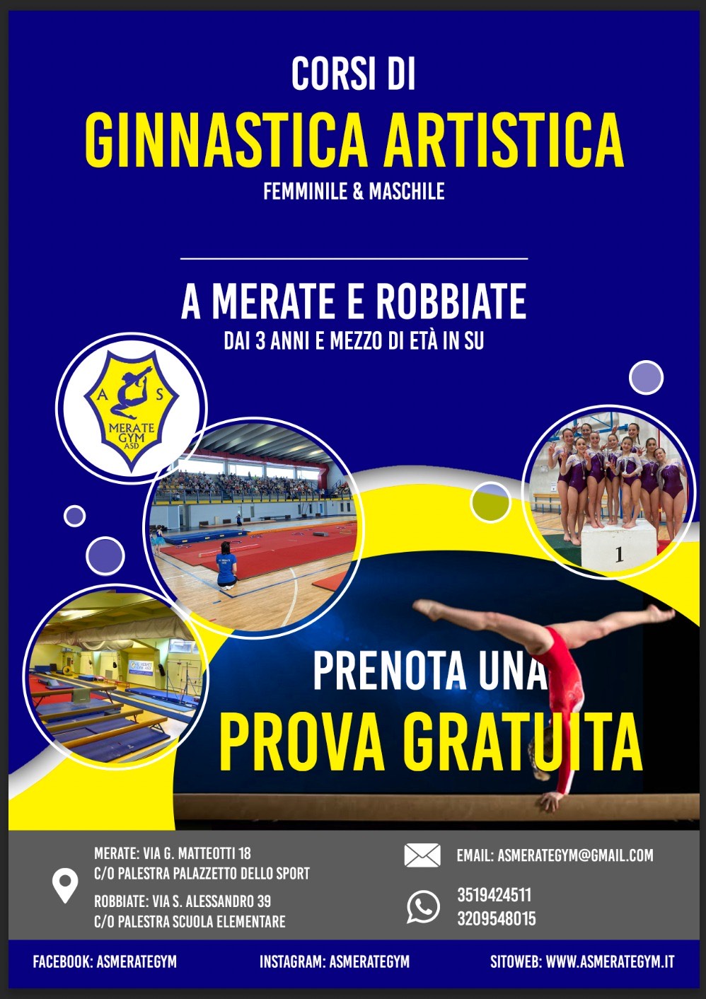 Per ulteriori dettagli o chiarimenti, è possibile inviare una mail a: asmerategym@gmail.com