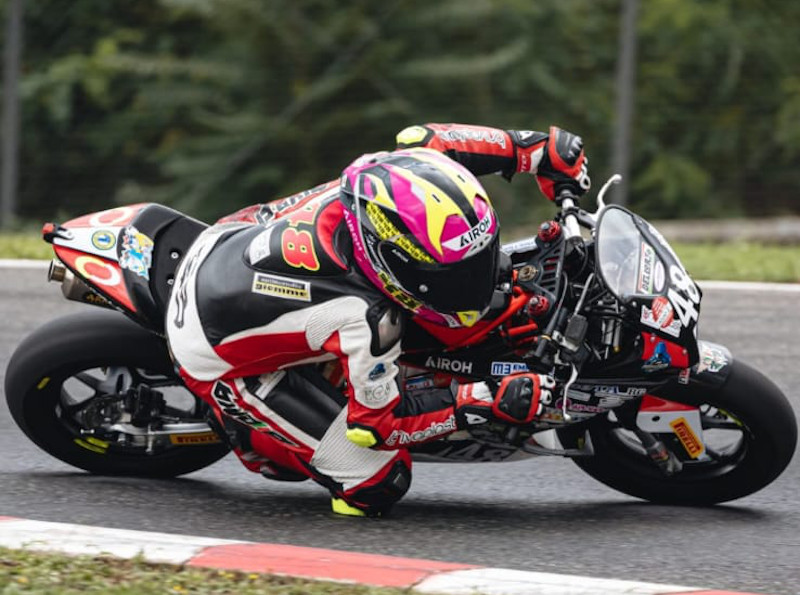 “Siamo arrivati a Viterbo giovedì sera e venerdì Ale ha iniziato a provare la moto con diversi assetti e gomme per testare la performance” racconta papà Marco con orgoglio. “Sabato il tempo era incerto e Ale al termine delle qualifiche si è piazzato al secondo posto e al quarto nellla sprint race. Sapevamo che domenica sarebbe tornato il sole e ci siamo preparati con un assetto da asciutto”.